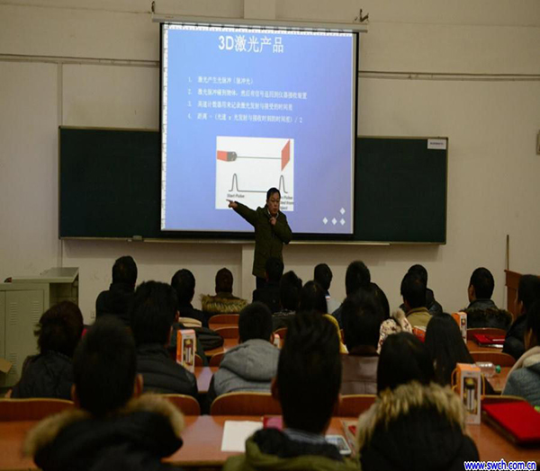 會上,南昌三維總經(jīng)理蔡紹青先生首先向?qū)W校師生們介紹公司的主要產(chǎn)品,如3D激光產(chǎn)品、GPS、拓普康全站儀、天寶電子水準儀等測繪產(chǎn)品,并表示測繪大賽不僅可以增加學生的興趣愛好,豐富它們的大學生活,也可以提高他們的測繪技術,使測繪水平達到另一個層次,在座的師生全神貫注的聆聽這一講座,并受益頗多。同時,他強調(diào),南昌三維貫徹著以“質(zhì)量為先,信譽為誠,服務為宗”的宗旨。